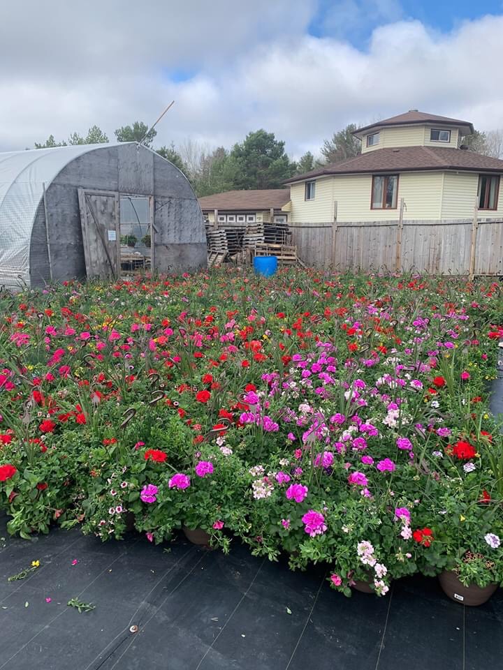 Our hanging baskets are starting to come in. Right now we just have our Geranium mixes in with more to follow.